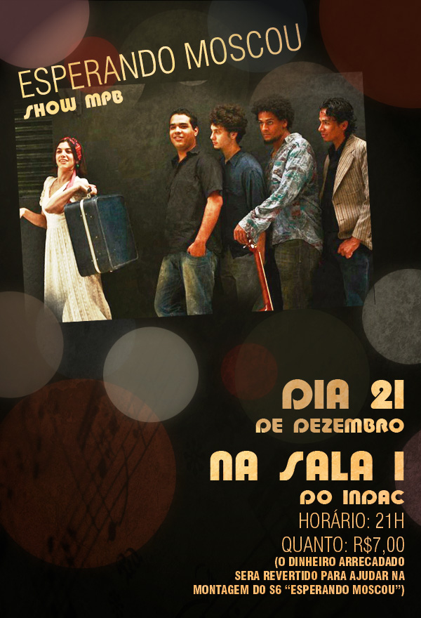 Acontece nesta terça-feira, dia 21 de dezembro às 21hrs o show de MPB ESPERANDO MOSCOU, para arrecadar fundos para a produção de nossa peça ESPERANDO MOSCOU, por um preço camarada!